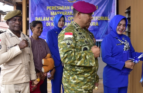 “Kita hadir bersama dalam rangka meresmikan bedah rumah dalam rangka kegiatan Operasi Teritorial (Opster) TNI terhadap rumah PNS Kladius Fonataba, anggota Denma Kodaeral X yang berada di lingkungan Kampung Nelayan Hamadi ini,” ujarnya.